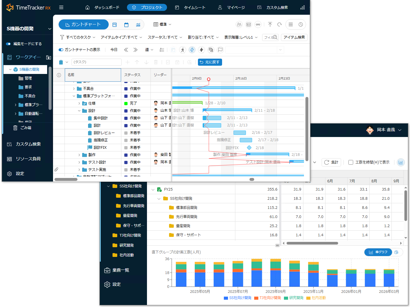 TimeTracker RXは、ソフトウェア開発、ハード設計、営業、Web制作などの知識労働・デスクワーク業務における工数管理・プロジェクト管理のためのツールです。
