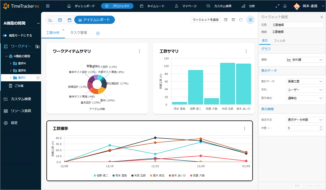 TimeTracker RXは、プロジェクトや業務の改善を目的とした工数管理ツールとして改善につながる正確な事実を計測し、分析するしくみを提供しています。