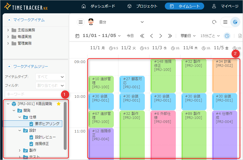 タイムシートで実績工数を入力します。